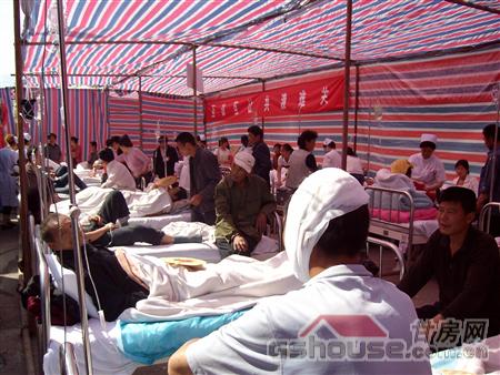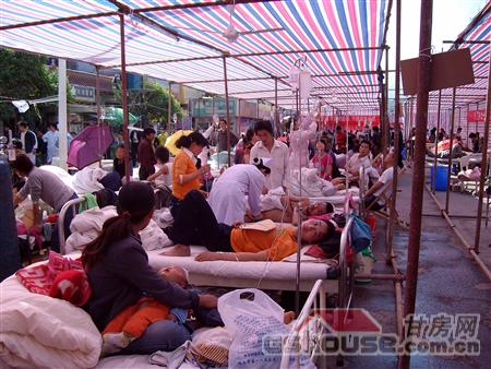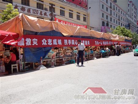 由于还有余震不时发生,记者在现场看到,很多武都区市民在马路旁边搭起了简易账篷临时住宿。一些从周边重灾地区救援出来的伤者在马路边搭起的简易账篷接受治辽,有部分建筑成为危楼,墙面出现了大量裂痕,部分银行也搬到外边露天办公,政府正在调动各个部门全力进行救灾工作。
